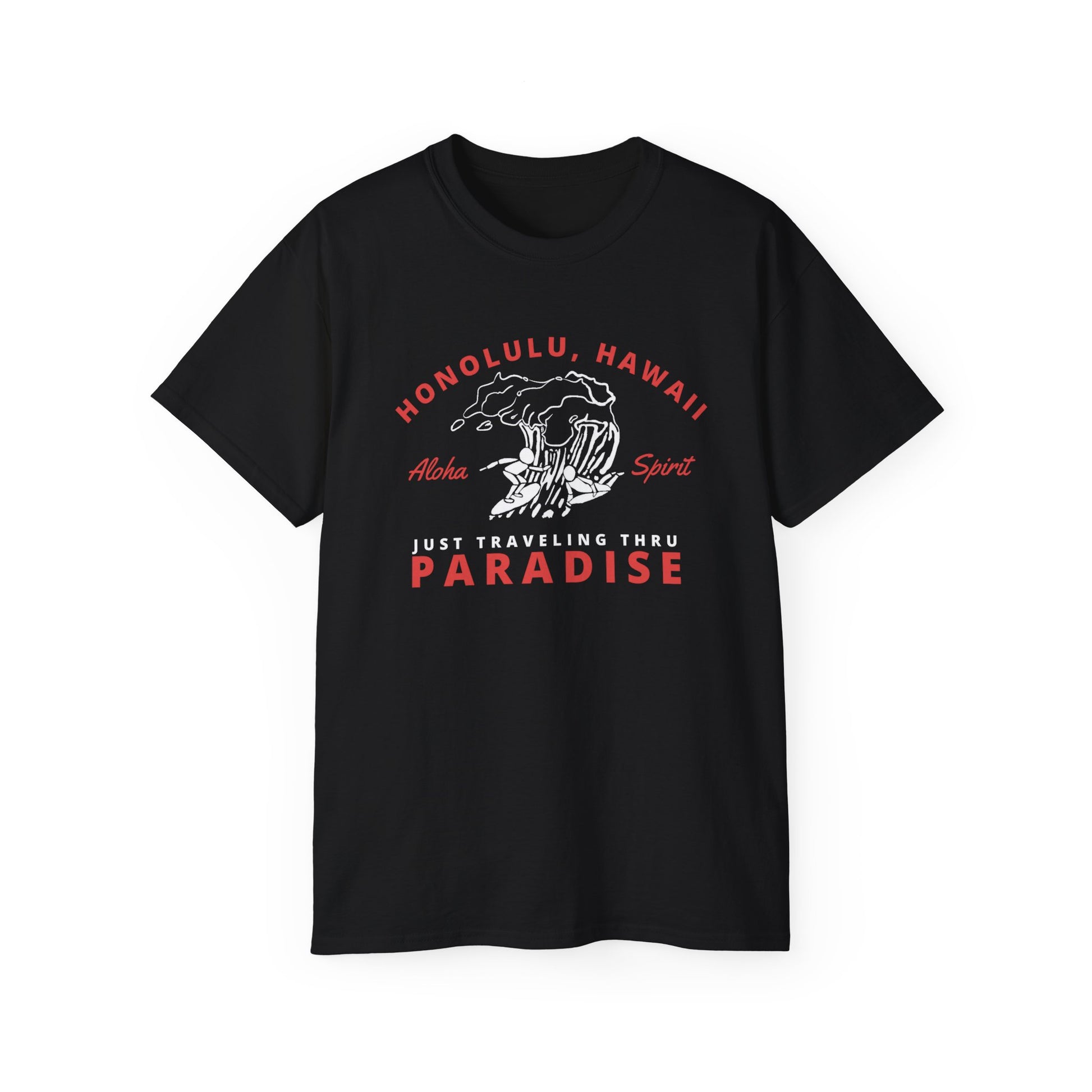 Ride the waves of paradise with our "Honolulu Hawaii" tee. Featuring the iconic Just Traveling Thru dudes catching a wave, this shirt captures the spirit of surf bliss in the heart of Honolulu. Embrace the sun, sea, and sand with style as you navigate the waves of life in this must-have tee. 🌴🚀 #Honolulu #Hawaii #Surf #Paradise #JustTravelingThru