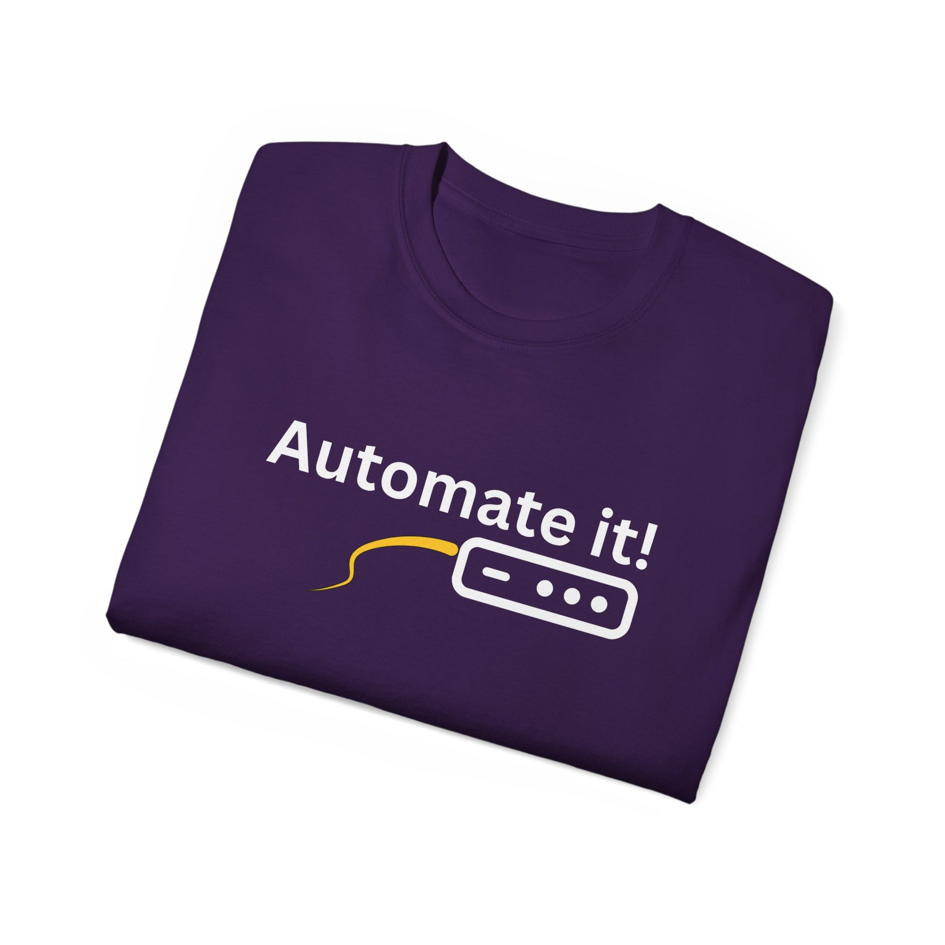 Power up your workflow — and your wardrobe. Whether you’re wrangling routers, scripting your way out of config chaos, or just quietly judging manual processes, this bold “Automate It!” design says it all.